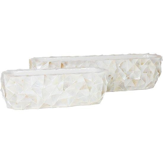 Okrasni lonec Coast je ročno izdelan iz pravih školjk, ki so lepljene na steklo, notranjost lonca pa je belo oz. črno lakirana. Lonec je primeren samo za notranjo uporabo.