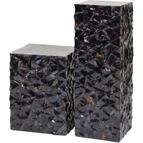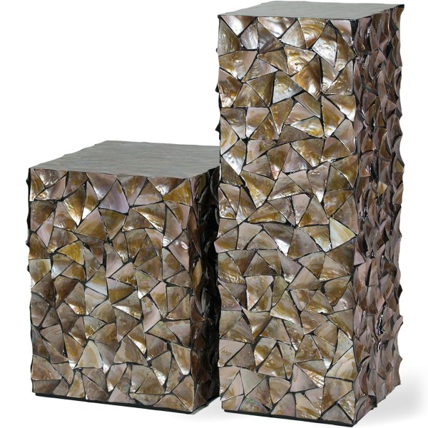 Dekorativni pedestal je ročno izdelan iz pravih školjk, ki so lepljene na steklo. Primeren je samo za notranjo uporabo.