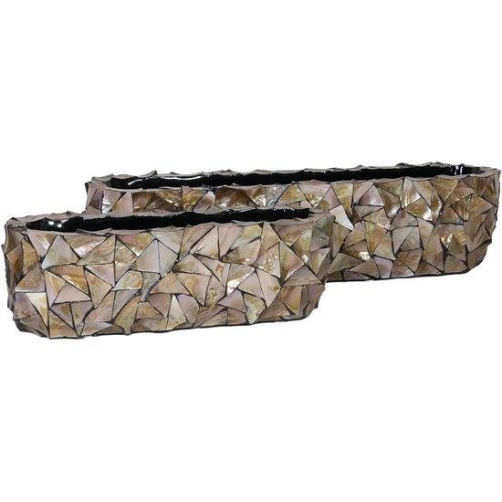 Okrasni lonec Coast je ročno izdelan iz pravih školjk, ki so lepljene na steklo, notranjost lonca pa je belo oz. črno lakirana. Lonec je primeren samo za notranjo uporabo.