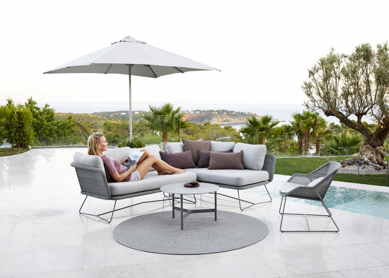 Summer equals a life outdoors, and we like to spend as many hours as possible outdoors. A parasol can help increase the possibility of being out on the terrace or balcony. Major is as the name suggests, in the category under large parasols from Cane-line, and therefore provides shade for a larger arrangement of outdoor furniture. Major is made in an elegant design with durable and long-lasting materials. Major is a stylish parasol, made from aluminum with a cover in Solution dyed fabric. The parasol has a very user-friendly ergonomic sliding system, which makes Major very easy to handle, with one sliding movement the parasol can be opened and closed without using force.