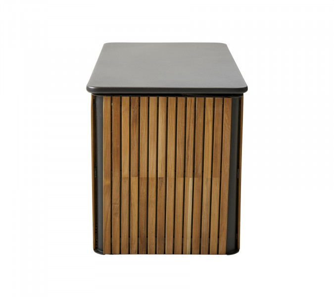 Combine je funkcionalna in prostorna škatla iz črnega prašno lakiranega aluminija in letvicami iz certificirane tikovine. Kombinirana škatla je odlična rešitev za shranjevanje na prostem, za shranjevanje vaših blazin, ko se vreme spremeni. Cane-line teak je odobren in gojen v skladu s sistemom certificiranja SVLK. Zaboj za blazine Combine je kljub svoji velikosti precej lahek v materialu in ima pokrov z mehkim zapiranjem za vaše udobje.
