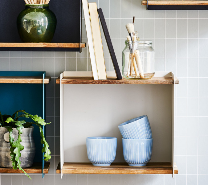 Stenski regal Box je zelo praktičen in uporaben, saj se ga lahko uporablja za različne namene, montirate pa ga lahko po svoji želji, eden zraven drugega ipd. Primeren je tako za kuhinje, kopalnice, hodnike,... Regal je izdelan iz aluminija in tikovega lesa, kar pomeni, da je primeren za notranjo ali zunanjo uporabo. Na voljo je v črni, beli in aqua barvi.