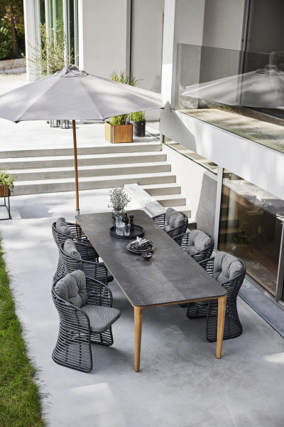 As the name of the range expresses, the parasol is created with a focus on a classic and timeless design that fits into any decor in your outdoor environment. This Classic parasol is designed to be combined with the Peacock daybed, where it will create lovely shade, so the area can be enjoyed even when the sun is at its highest. The classic parasol is made from certified teak wood, where the elegant teak slats form a beautiful web of warm wood on the inside of the parasol when it is erected. The fabric of the parasol is the durable Solution dyed 280gr/m2, which ensures a weather resistant parasol cloth, which is also resistant to UV rays. In all, a lasting and classical parasol with a long life.