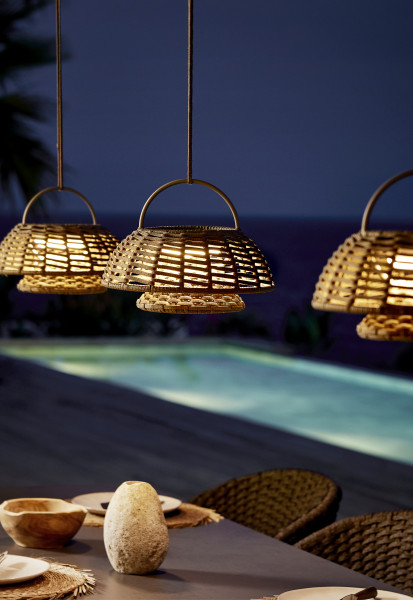 Ustvarite si prijetno in domače vzdušje v svojem zunanjem prostoru z visečo svetilko Illusion. Svetilka ima živahen in eleganten pleten vzorec v kombinaciji s trpežnim in vremensko odpornim materialom Cane Line Soft Rope, ki doda videzu mehak pridih. Kombinirali jo boste lahko povsod, tako v jedilnici, kot v dnevnem prostoru, vaš prostor pa bo osvetlila s prijetno toplo in domačo svetlobo. Elegantno stojalo, ki je na voljo z doplačilom je izdelano iz praškasto lakiranega aluminija.