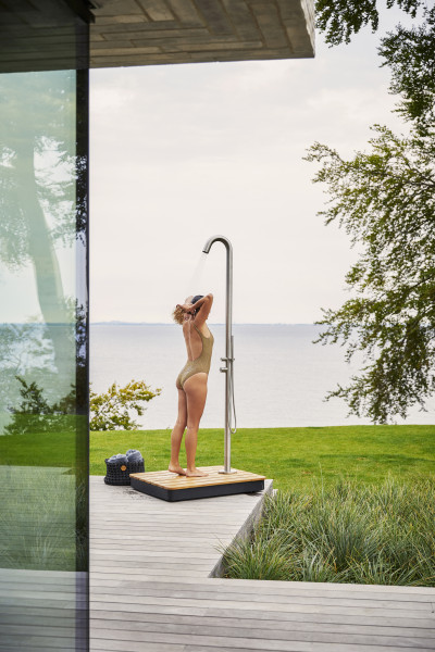 Zunanji tuš Lagoon je za vse, ki iščejo dodatno razkošje ob plavalnem bazenu. Oblikovali so ga oblikovalci podjetja Cane Line, pri čemer so strmeli k elegantnemu in ekskluzivnemu videzu ter enostavni uporabi. Tuš je izdelan iz nerjavečega jekla, zraven pa lahko dokupite tudi pod iz certificirane tikovine, ki bo prosturu dodala svežino in topel pridih.