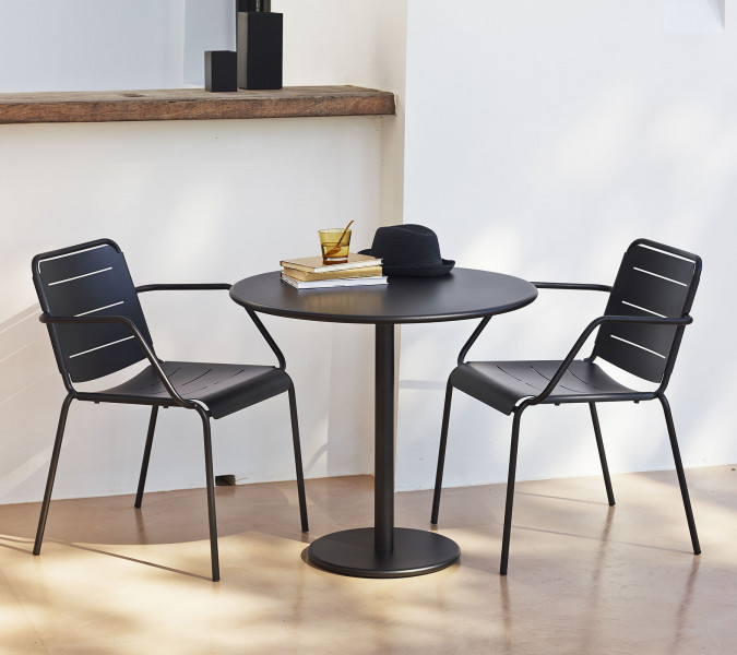 Mizici Go pravimo tudi miza "to go", saj je zelo lahka in enostavna za prestavljanje kjerkoli jo potrebujete. Zaradi minimalističnega izgleda lahko k mizici kombinirate kateri koli stol iz kolekcije, ne glede na vrsto materiala. Miza Go je izdelana iz aluminija, v nogi mize pa je utež zaradi stabilnosti le te. Odporna je na vse vremenske razmere in je primerna za zunanjo ali notranjo uporabo. Dobavljiva je v antracitni ali beli barvi.