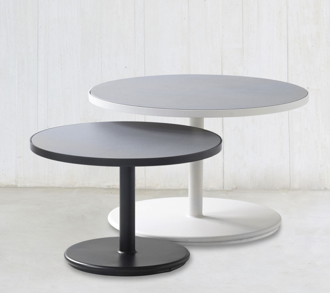 Go lounge table is a simple and elegant lounge table – a geometric playful construction with its 2 circular elements – top and base. The elegant, almost floating table top and the reduced minimalist foot gives the table a unique design, which fit in to almost every interior. Go lounge table allows you to mix and match colours and styles. The Go lounge table is made from powder-coated, all-weather aluminium with a counter weight base, to maximise stability and strength and thereby allow use in all weather conditions. The Go lounge table is designed by Cane-line Design. The base/foot can be combined with table tops in different sizes and designs.