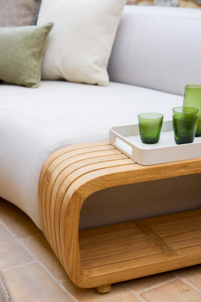 Kavna mizica Mellow znamke Cane-line Design je prilagodljiv kos, ki dopolnjuje vaš zunanji bivalni prostor, ne glede na to, ali jo uporabljate samostojno ali enostavno povežete s sedežno garnituro Mellow. Izdelana iz vrhunskega tikovine razreda A, nudi naraven, topel pridih, ki se ujema z vsakim zunanjim okoljem. Trpežna tikovina je odporna na vremenske vplive, zaradi česar je idealna izbira za uporabo na prostem.