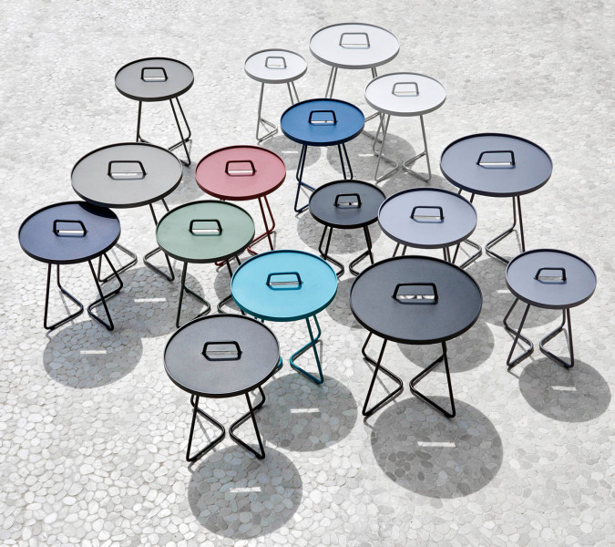 Zelo uporabna klubska mizica On-The-Move bo prepričala vsakogar, saj je zelo lahka za prenašanje, zgornji del pa se hkrati lahko uporablja kot pladenj za prenašanje oz. serviranje. Narejena je iz aluminija in primerna tako za zunanjo, kot za notranjo uporabo ter dobavljiva v črni, beli in svetlo sivi barvi.