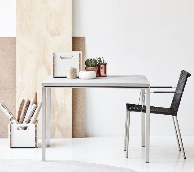 Minimalistično mizo Pure sta oblikovala priznana danska oblikovalca Foersom & Hiort-Lorenzen MDD. Ogrodje mize je iz nerjavečega jekla barvan v lava sivo barvo.