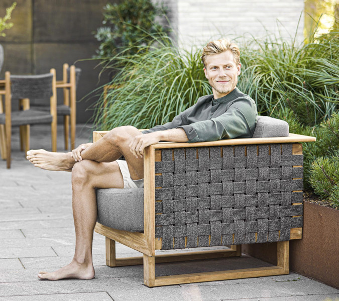 Angle je eksluziven počivalnik, narejen iz tikovine najvišje kakovosti, ki ga je zasnoval priznani danski dvojec Foersom & Hiort-Lorenzen MDD, ki slovita po svoji pozornosti do podrobnosti in udobju. Okvir zofe je izdelan iz tikovine, medtem, ko je vzoren na straneh ročno tkan iz mehke vrvi Cane-Line, kombinacija obojega pa seveda zagotavlja prefinjen in eksluziven videz. Blazine Cane-line QuickDry & Airflow pa zagotavljajo, da se vrtna zofa hitro posuši po nalivu. Za ohranitev edinstvene barve tikovine ter vdrževanje finega tikovega lesa priporočamo uporabo izdelkov Cane-line Teak Care. Naši negovalni izdelki pomagajo ohraniti lepo in toplo zlato - rjavo barvo vašega pohištva iz tikovine.