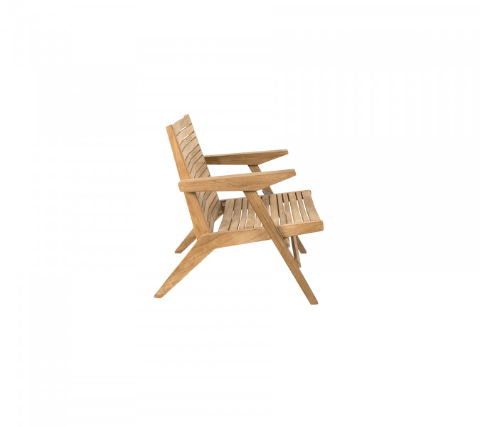 Flip je zložljiv lounge stol iz tikovine in hkrati nova interpretacija klasičnih zložljivih stolov s poudarkom na vrhunskem dizajnu in kakovosti. Toplina tika doda vabljiv sijaj preprostemu in elegantnemu lounge stolu Flip. Različne velikosti letvic dajajo stolu živahen in estetski videz. Naslonjalo za hrbet je nastavljivo tako, da ga lahko enostavno nastavite po svojih željah.