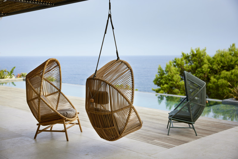Viseča gugalnica Hive je kiparska silhueta, ki je lahko zlahka osrednja točka v katerem koli zunanjem prostoru, bodisi sama ali v kombinaciji s preostalim pohištvom. Oblikoval jo je danski dvojec Foersom & Hiort-Lorenzen MDD. Navdihnila ju je oblika čebeljega panja tako, da gugalnica ponuja objemajočo se strukturo in dizajn, ki vam nudi zatočišče za razmišljanje in sprostitev. Izdelana je materiala Cane-line Weave® odpornega na vremenske vplive. Lahko jo obesite na močno vrv ali uporabite kot samostojen stol na trdi podlagi, ki jo lahko dokupite in je na voljo v tikovini ali aluminiju. Za maksimalno udobje pa so vključene blazine s peno QuickDry & Airflow, ki zagotavljajo, da bodo blazine suhe približno 1 uro po nalivu.