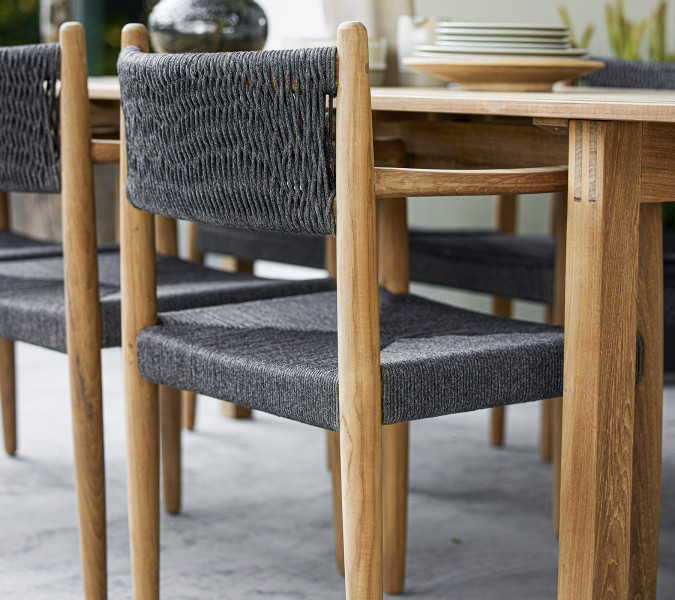 Royal is a dining chair featuring classic Danish design by Danish design duo Foersom & Hiort-Lorenzen MDD. Royal is a reinterpretation of the classic dining chair which is now available in an outdoor variant. The dining chair is manufactured using the finest teak on the market combined with an elegant and traditional Cane-line Soft Rope weave. The contrast between the warm teak and the soft weave produces an inviting and aesthetic look. A dining chair that exudes timeless design and traditional craftsmanship. To preserve the original unique teak colour and maintain the fine teak wood, we recommend to use Cane-line Teak Care products. Our care products help to preserve the nice and warm golden-brown colour of your teak furniture.