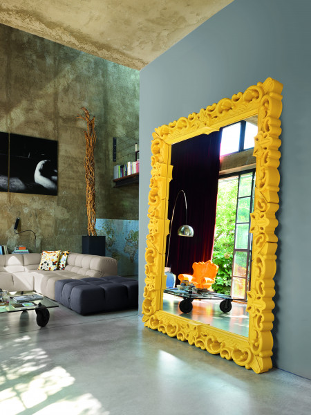 Mirror of Love sodi v kolekcijo Design of Love, ki sta jo ustvarili italijanska oblikovalca Graziano Moro in Renato Pigatti. Okvir je bogat v podrobnostih, ki jih navdihuje italijanska baročna umetnost, vendar je realiziran v sodobnem polietilenu.
