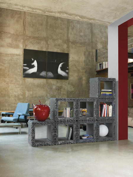 Joker of Love je vsestranski modularni element, ki daje dotik starinske ironije. Bogastvo njegovih detajlov, značilnih za italijanski baročni stil, se odlično ujema s popom in sodobnim polietilenom ter spominja na glavne značilnosti celotne kolekcije Design Of Love. Joker Of Love se lahko uporablja kot en sam modul ali pa se lahko kombinira z drugimi moduli, da postane knjižnji regal.