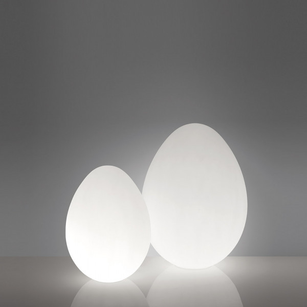 Dino je veliko jajce, ki z lahkoto osvetljuje notranje in zunanje prostore z eleganco in prefinjenostjo. Dino je talna svetilka z igrivim in bistvenim oblikovanjem, ki postane idealen kos pohištva v vsakem sodobnem prostoru. Izdelan je iz polietilena s tehnologijo rotacijskega oblikovanja in je na voljo v različnih dimenzijah.
