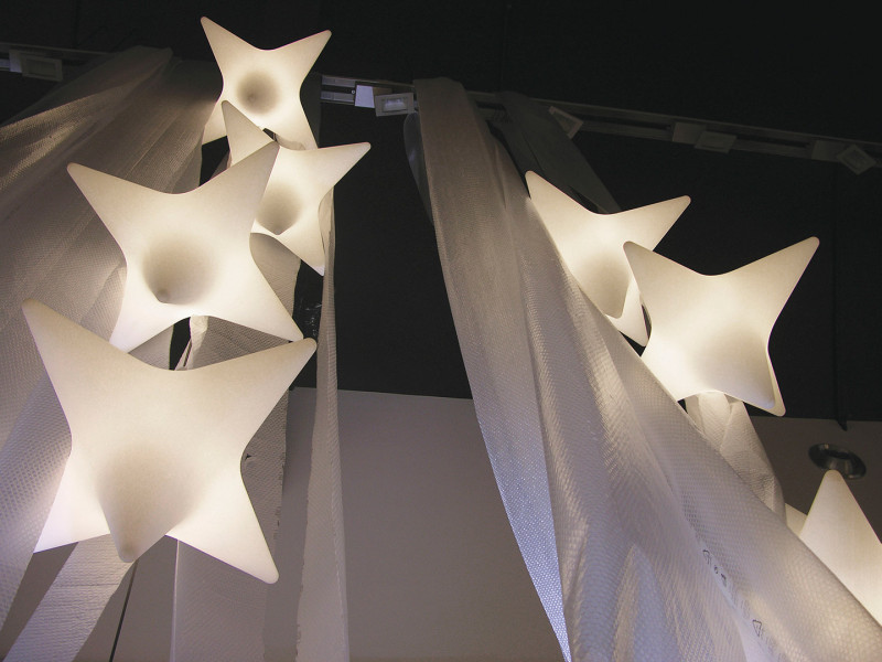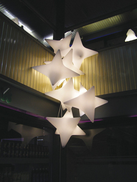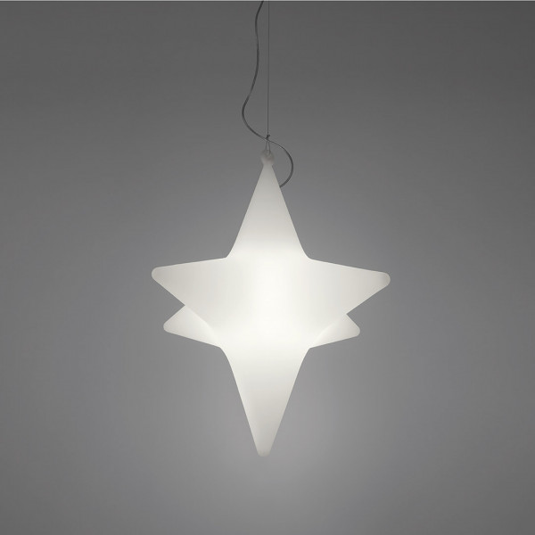 Sirio osvetli prostore in ustvarja čarobno atmosfero, zahvaljujoč njeni zadimljeni svetlobi in obliki, ki spominja na šestokrako zvezdo. Sirio je izdelan iz polietilena s tehnologijo rotacijskega oblikovanja in je lahko viseča svetilka ali svetlobni sedež.