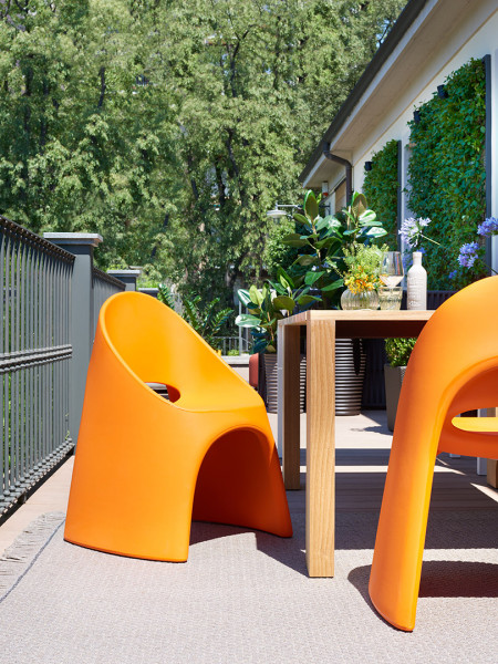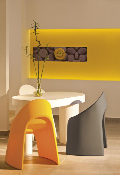 Amélie je oblikovalsko delo Italoa Pertichinija. Za Amélie so značilne tekoče in okrogle linije, ki so izdelane iz polietilena. Njegova konična oblika je rezultat teh raziskav in sporoča stabilnost in skladnost. Stožčasta oblika je popolna mešanica med lepoto in udobjem, z udobnim in objemajočim sedežem. Zaradi svoje posebne strukture je izdelek trden, stabilen in skladljiv.