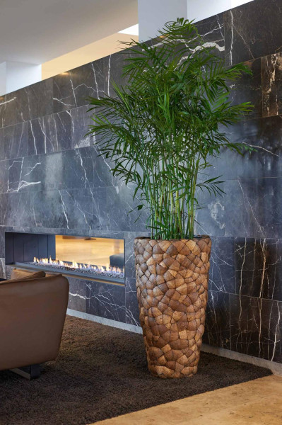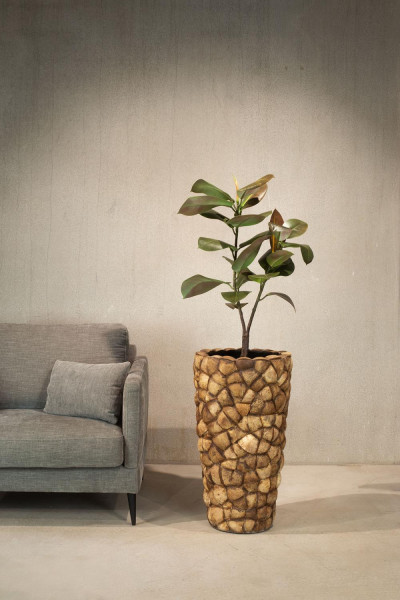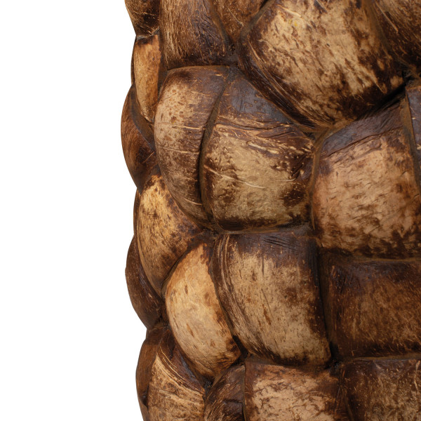 Okrasna vaza Coconut je ročno izdelana iz pravih kokosovih lupin, ki so skrbno izdelane v prave koščke in pritrjene na vazo. Ta metoda ne daje okrasni vazi samo edinstvenega videza, ampak tudi posebno teksturo, ki bo zagotovo pritegnila pozornost v vsakem prostoru, pa naj bo to dom, pisarna, restavracija ali hotelsko preddverje.