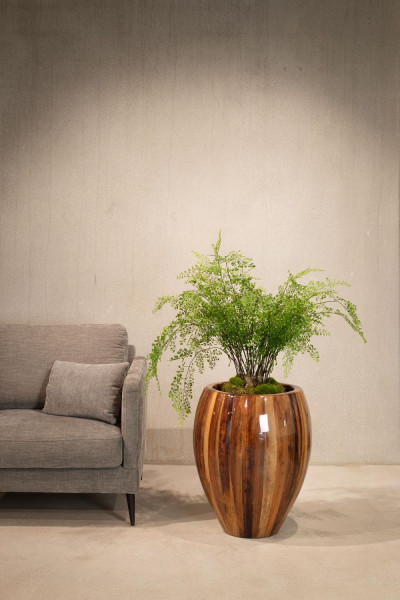 Okrasni lonec Banana je izjemno kvaliteten okrasni lonec ročne izdelave, izdelan iz naravnih vlaken banane, notranjost pa iz zelo močnega in hkrati lahkega fiberglasa. Lonec ni primeren za zunanjo uporabo.