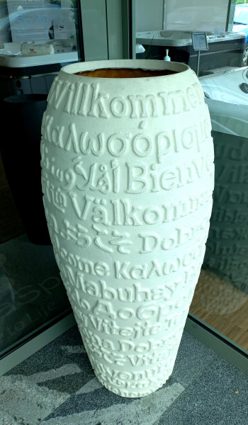 Vsak lonec Welcome je edinstven, saj je ročno izdelan. Idealen je za hotele, restavracije, trgovine ipd. saj izreka dobrodošlico v 21 jezikih, med njimi tudi v slovenščini.