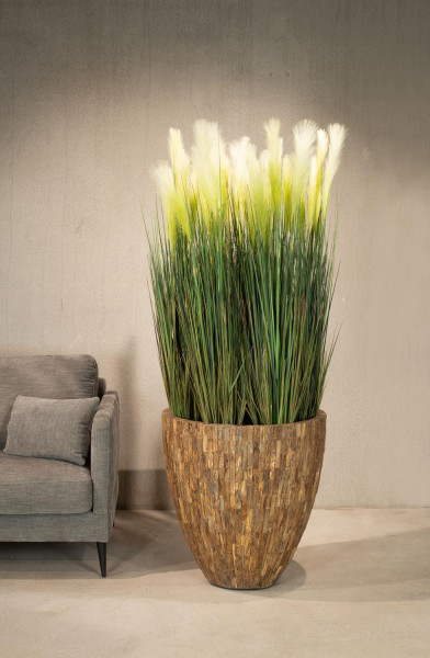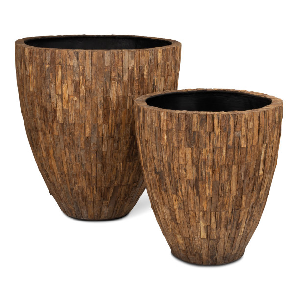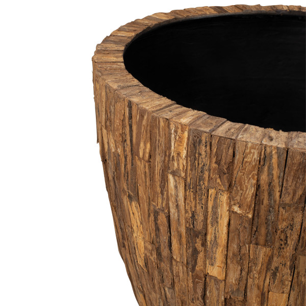 Okrasni lonec Woody, izdelan iz edinstvenega Cemani lesa, je ročno izdelan in eleganten okrasni lonec, ki bo polepšal vsako okolje. S svojo okroglo obliko, impresivno velikostjo in teksturo naravnega lesa zagotavlja popolno platformo za rastline in dekoracije v vsaki notranjosti.