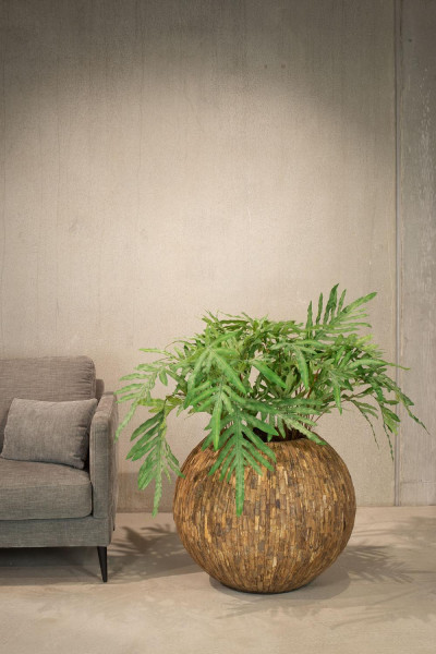Woody Globe okrasni lonec izdelan iz edinstvenega Cemani lesa, je ročno izdelana mojstrovina. S svojo okroglo obliko, impresivno velikostjo in naravno teksturo lesa ponuja eleganten način za razstavljanje rastlin v zaprtih prostorih.